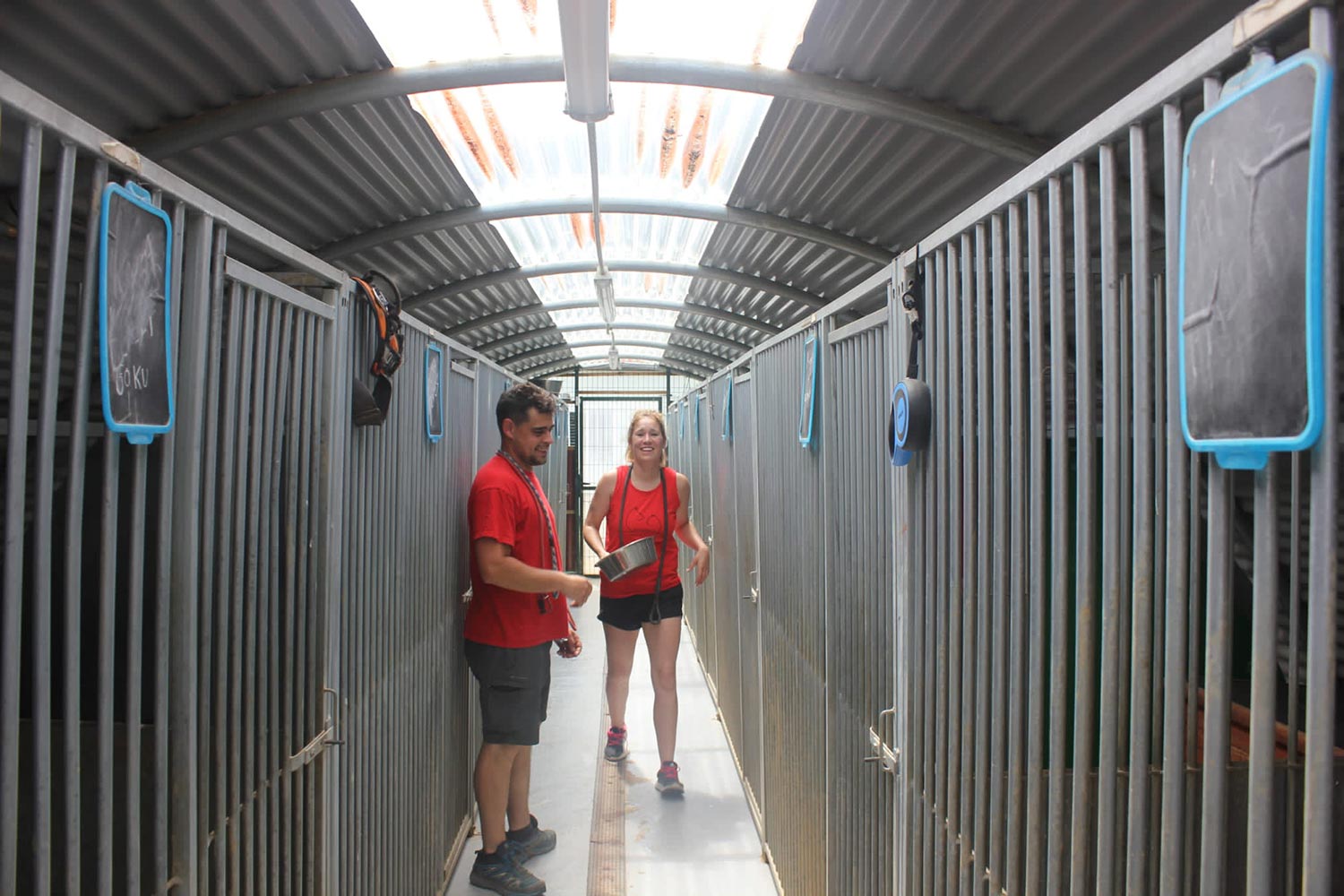 El edificio cuenta con 8 jaulas individuales diseñadas en exclusiva para ellos. Disponen de una amplia cristalera para hacer más entretenida su estancia.